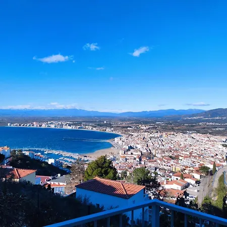 Situated about 4 km from the expansive La Rubina Beach, the 1-bedroom Maison Vacances Avec Piscine Commune Et Vue Mer Roses invites guests to relax at a terrace.
